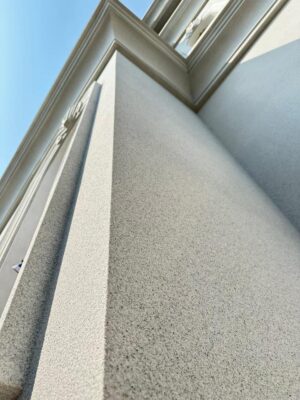 Bề mặt hoàn thiện có độ sần vừa phải, cảm giác chắc tay, màu sắc trong và sạch. Khi quan sát ở khoảng cách gần, lớp sơn không bị phẳng hay giả, các mảng hạt liên kết chặt chẽ, mang lại tổng thể sang trọng và bền bỉ theo thời gian.