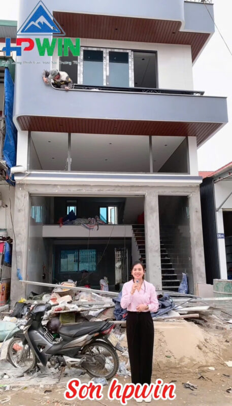 Công trình nhà ở 5 tầng vừa hoàn thiện, khoác lên mình lớp áo sơn...